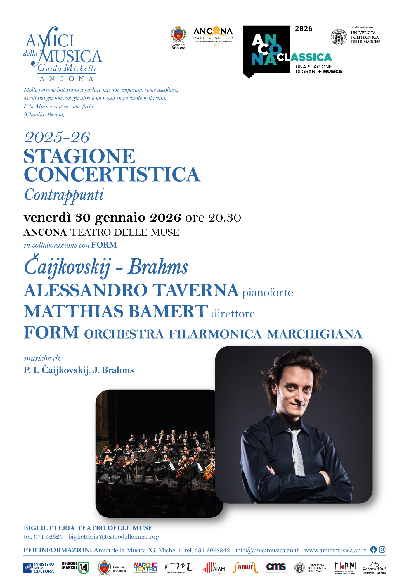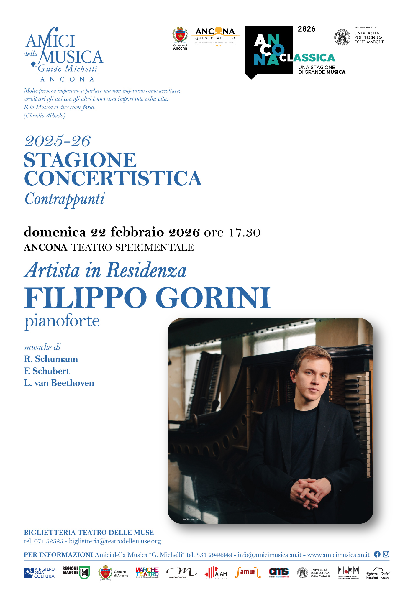 Società Amici della Musica “G. Michelli” Ancona, 331 2948848 oppure info@amicimusica.an.it